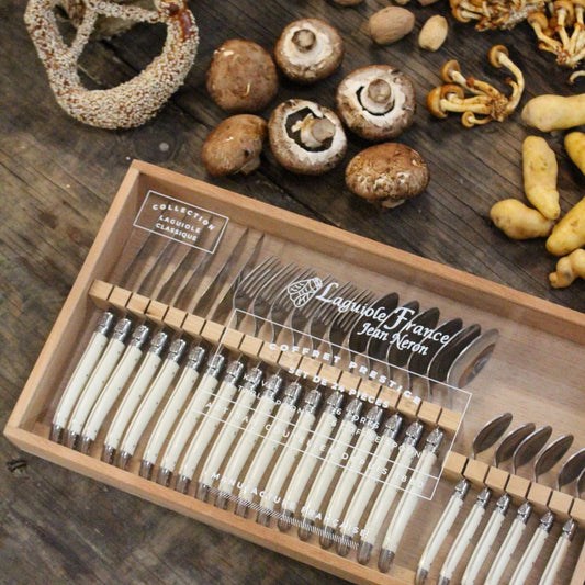 Laguiole 24 Piece Flatware Set - Ivory in Wood Box with Acrylic Lid